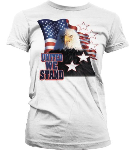 United We Stand, Bald Eagle American Flag Juniors T-shirt, America Patriotic Juniors Shirt, Large, White