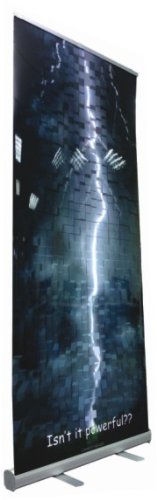 33" retractable banner stand made from anodized aluminum and safely protects the banner print when not in use. Includes a nylon carrying bag for convenient storage and portability.